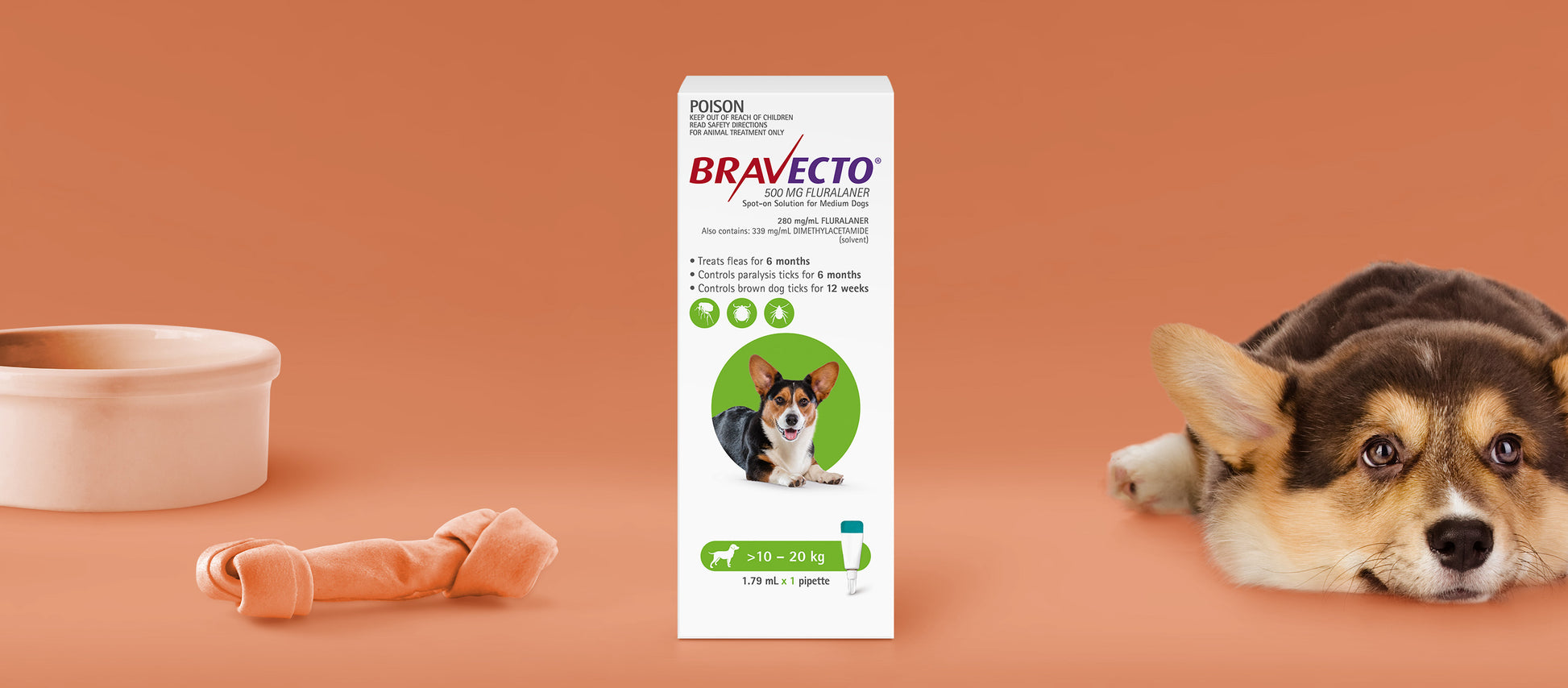 Our long-lasting protection is now even longer. Just two doses provide full year protection against fleas and paralysis ticks.